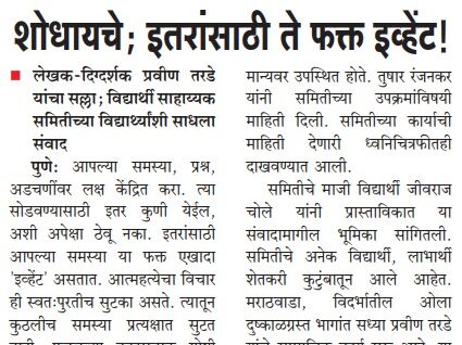 समिती सारखी संस्था अस्तित्वात आहे याची मला कल्पना नव्हती होस्टेल सगळीकडेच असतात पण होस्टेल हे विकास केंद्र होऊ शकते आणि त्यातून मुलांच्या भवितव्याचे शिल्प तयार होऊ शकते, असे काही असेल मी हे पहिल्यांदाच पाहिले. त्यामुळे मला खूप आनंद झाला आणि आश्चर्यही वाटले. समितीच्या कार्यासाठी खूप खूप शुभेच्छा!